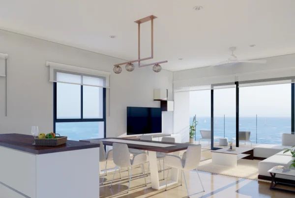 Renders interiores de apartamentos en la playa de Sant Antoni de Calonge. Nuestros renders transmiten la sensación y elegancia de vivir junto al mar.